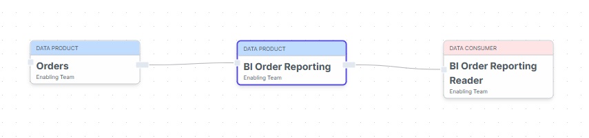 Then the Consumer-Aligned Data Product “BI Order Reporting” requested access from the Source DP to be transformed for the BI Reporting purpose.